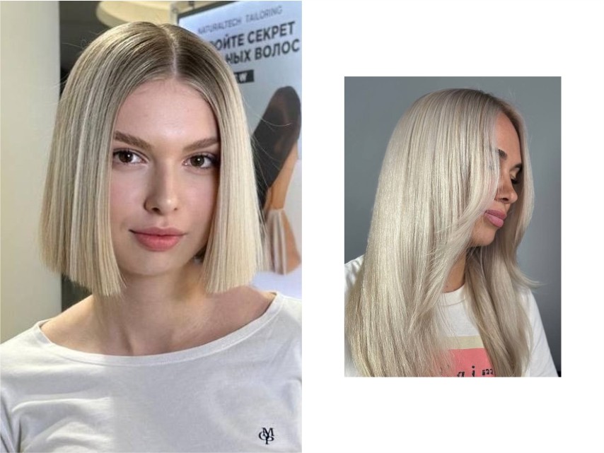 • Для светлой кожи с холодным подтоном: Настоящую магию творят холодные оттенки — платиновый - для создания изысканного образа, пепельный - подчеркнет выразительность черт или скандинавский блонд, который добавит аристократичности. Такие цветовые решения создают эффектный контраст, подчеркивая благородность вашего типажа.