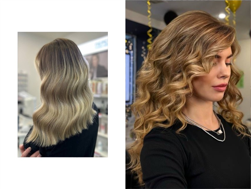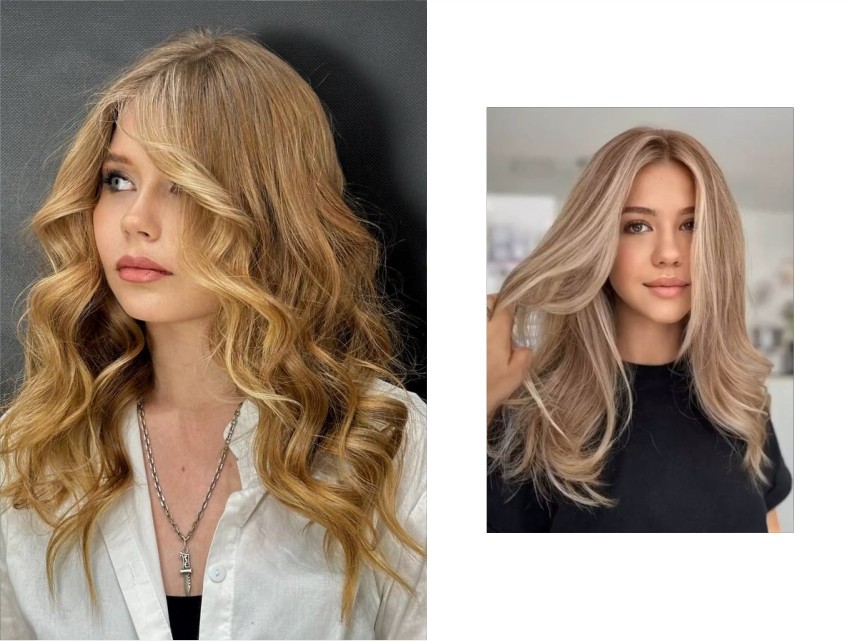• Для кожи среднего тона с теплыми нотами: ваша стихия — блонд с теплым сиянием. Карамельный - подарит легкое свечение, песочный - создаст естественный образ или медовый - придаст ненавязчивый эффект солнечных бликов. Такие оттенки добавят образу мягкости и естественных переливов вашим волосам.