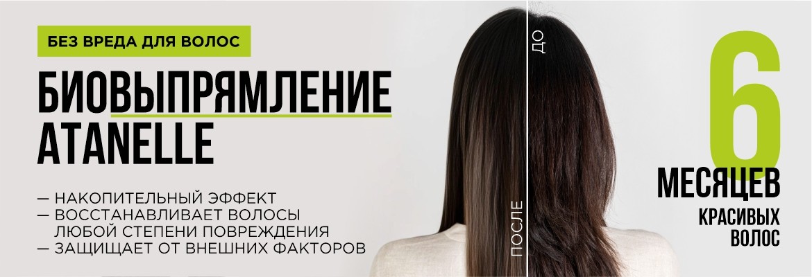 Биовыпрямление без вреда для волос. В составе ATANELLE вы не найдете, формальдегида токсичных смол и агрессивных кислот. Это абсолютно безопасная формула. Мы не травмируем волосы, а лечим их.