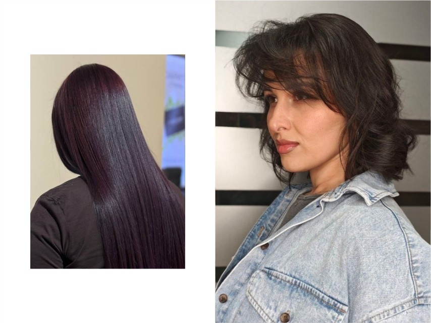 Абсолютно чёрные волосы придают образу строгость, но в 2026 году они воспринимаются как плоские. Современные тенденции требуют объёма, движения, воздуха. Глухой чёрный уступает место сложным тёмным тонам с нюансами: «горький шоколад», «эспрессо с карамелью» или «черносмородиновый». Они глубже, многограннее и подчёркивают черты лица мягче.