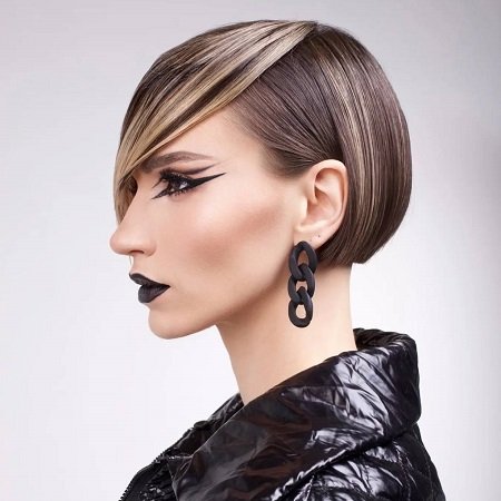 используется сложная техника, работа с рассыпчатыми пигментами, цветовые переходы, сложная графика, накладные элементы, ленточные или пучковые ресницы. Сюда можно отнести технику рисованного грима или стилистических вариантов макияжа