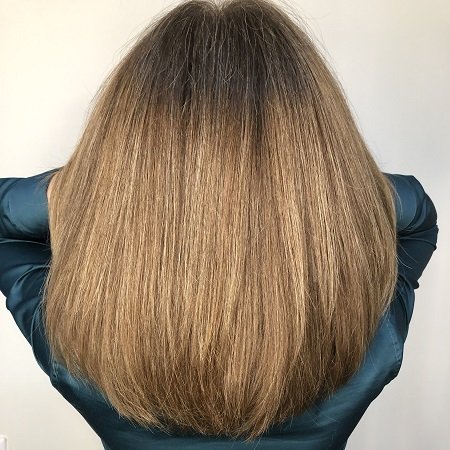 Придание нового косметического цвета по длине и на корнях стойким красителем