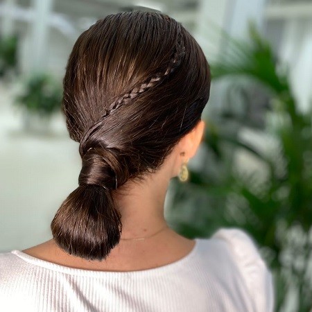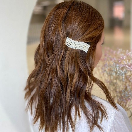 Идеально подходит обладательницам красивой шеи, так как особенно акцентирует внимание на ней. Прекрасно смотрится на любой длине волос.